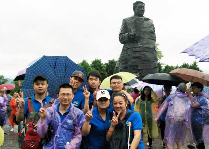 來張家界前,詢問導游如果下雨在張家界的體驗會是怎樣的?導游說如果下雨天氣,證明我們太幸運了,雨后的張家界是最壯觀的,可以看到仙氣繚繞,美得讓人叫絕的奇妙山景。第二天,驟雨傾盆,阻擋不了我們對美麗風景的渴望,也無法抵擋我們PK小組想要勝利的熱情。你看,雖然是雨傘、雨衣出場,我們4組PK隊伍還是爭先恐后完成了第一張小組全家福拍照任務;他們燦爛的笑容,與雨水,與風景融合一體,美得絕妙。