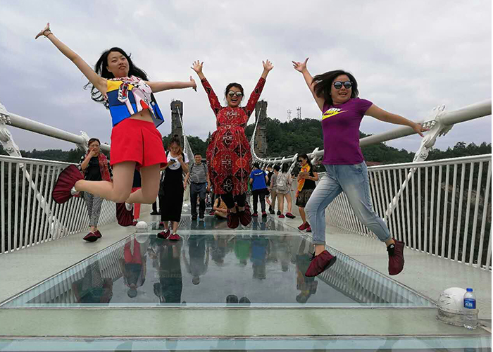 事實證明,大家都比自己想象中的要勇敢,那些原計劃哭著仰望天空‘痛苦’爬過玻璃橋的伙伴們,反而笑得最美麗!